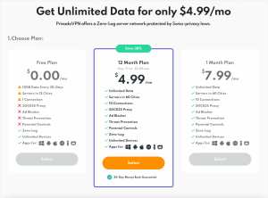 PrivadoVPN has a free version and a premium version, available in two payment plans. Here they are: