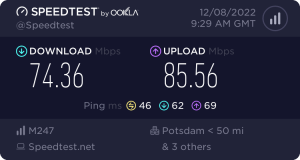 In order to achieve the most objective results of the test conducted, we choose the same server on the speedtest service site during testing, thus leveling out the loss of speed due to ping, in order to be able to also calculate the potential loss/gain in the case of using PrivadoVPN.